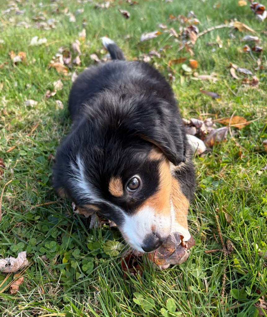 Below is a picture of my new mini bernedoodle puppy Maysie. I plan to train her to be an emotional support dog in my therapy office.